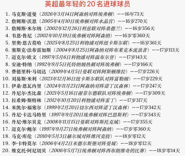 更絕的是,阿森納絕殺的兩個(gè)進(jìn)球,是由替補(bǔ)上場(chǎng)的4名球員分別完成的助攻和進(jìn)球。當(dāng)日16歲73天的道曼,成為英超歷史上最年輕的進(jìn)球者。