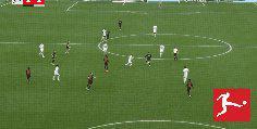 補(bǔ)時(shí)第3分鐘,霍夫曼為勒沃庫(kù)森破門,VAR介入判定此球越位在先,進(jìn)球無(wú)效。